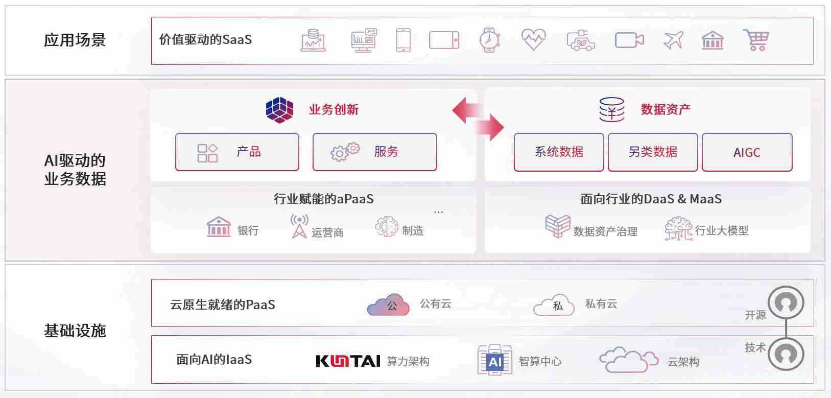 数字时代,,,,围绕企业数字化转型的关键要素,,,太阳成tyc33455cc数码开创性的提出数云融合战略和技术体系框架,,着力在云原生、、数字原生、、、、AI原生和信创产业上架构产品和服务能力,,,为处在不同数字化转型阶段的快消零售、、、、汽车、、、、金融、、、、医疗、、政企、、教育、、运营商等行业客户提供泛在的敏捷IT能力和融合的数据驱动能力,,,,构建跨界融合创新的数字业务场景和新业务模式,,,助力企业级客户建立面向未来的核心能力和竞争优势,,,全面推动社会的数字化、、、、智能化转型升级。。。。