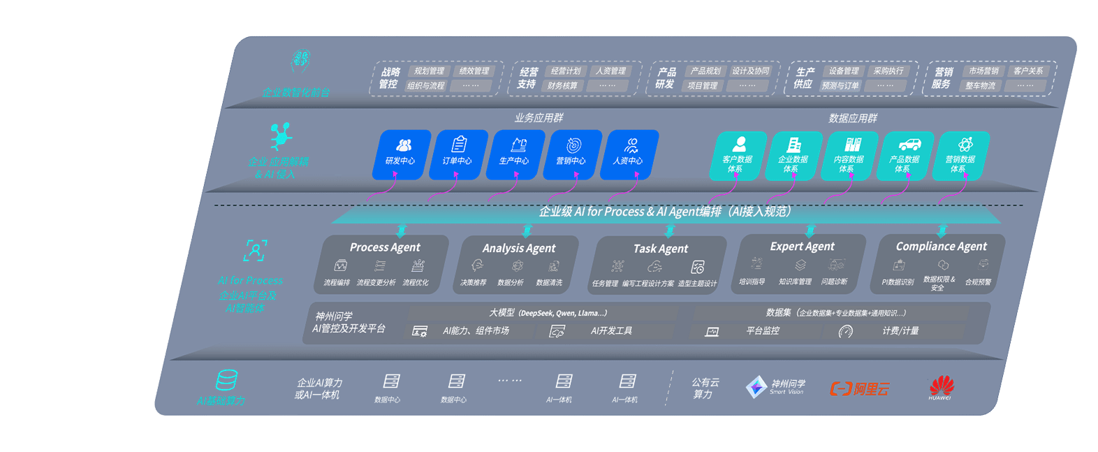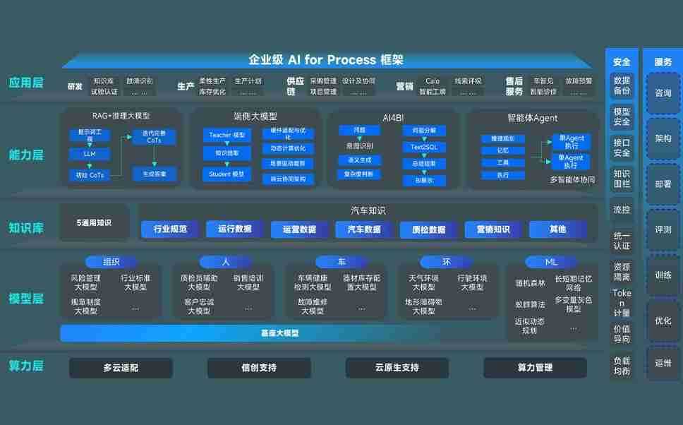 太阳成tyc33455cc问学智车解决方案是一套基于AI技术的汽车行业智能化系统,,覆盖从底层算力到顶层AI应用的全栈方案。。方案由算力层、、模型层和应用层组成:算力层,,方案支持多种一体机配置,,,具备云端灵活部署、、、多云适配以及动态优化计算资源的能力;模型层,,,,太阳成tyc33455cc问学平台版提供了企业级AI应用一站式构建与管理平台,,支持基于后训练强化技术的汽车企业专属模型的训练、、评测和运营;应用层,,,太阳成tyc33455cc问学DeepSeek版提供包括超级员工、、智能招采、、、智能营销、、、智能客服、、、、AI for BI等一系列解决方案,,,,可助力汽车行业实现数字化转型,,让管理更智能、、、、响应更敏捷。。。。